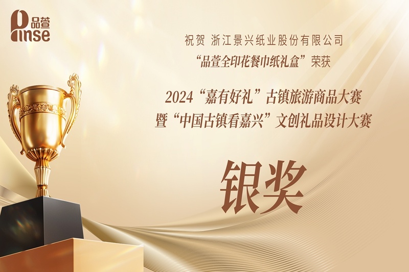 近日,景興紙業(yè)“品萱全印花餐巾紙禮盒” 在嘉興市文化廣電旅游局舉辦的2024“嘉有好禮”古鎮(zhèn)旅游商品大賽暨“中國(guó)古鎮(zhèn)看嘉興”文創(chuàng)禮品設(shè)計(jì)大賽上成功摘得銀獎(jiǎng)!